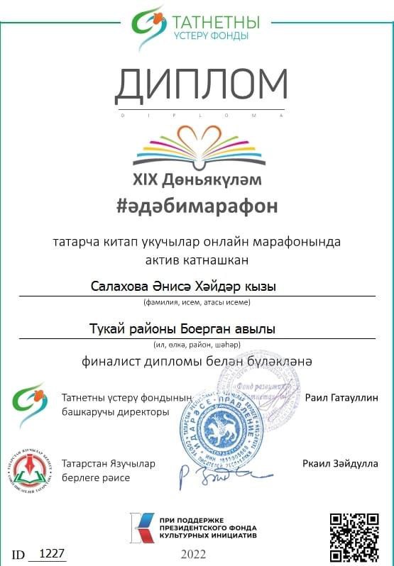 XIX Дөньякүләм «Әдәби марафон» (#әдәбимарафон)бәйгесендә Тукай районыннан 17 кеше катнашты һәм финалист дипломы белән бүләкләнделәр.