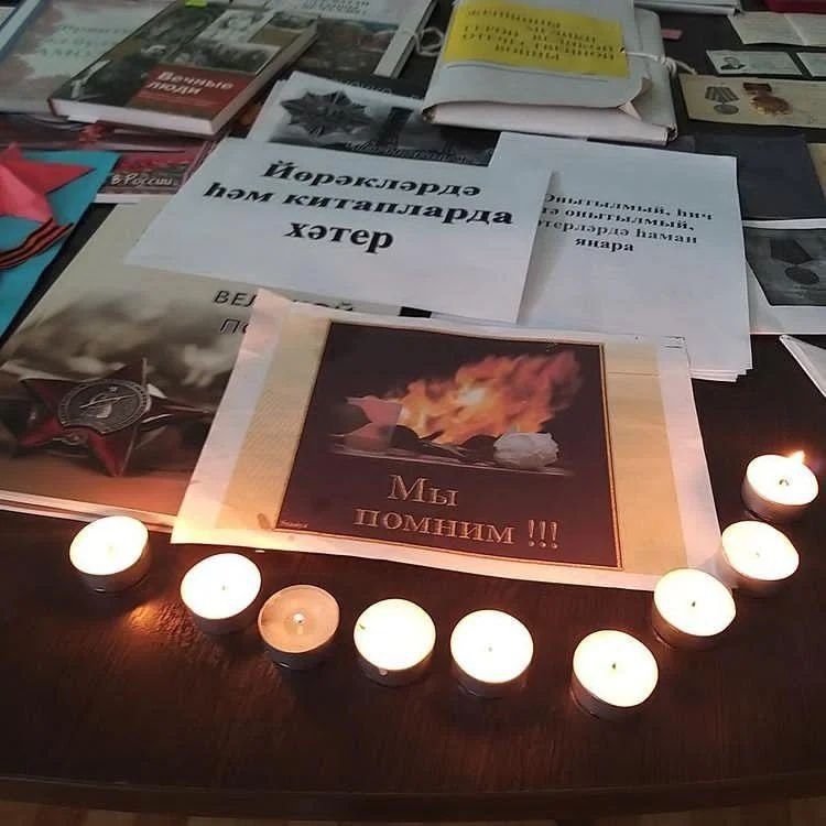 22 июнь көнне Калмия авыл китапханәсе “Хәтер шәме” Бөтенроссия акциясенә кушыла. Акциянең төп максаты – ватанпәрвәрлек, тарихи үткәнебезгә ихтирамлы мөнәсәбәт тәрбияләү һәм 1941-1945 елгы Бөек Ватан сугышы чорларының фаҗигасен һәм каһарманлыкларын онытмау. Шулай ук " Хәтер китабы" исемле китап күргәзмәсе дә оештырылды