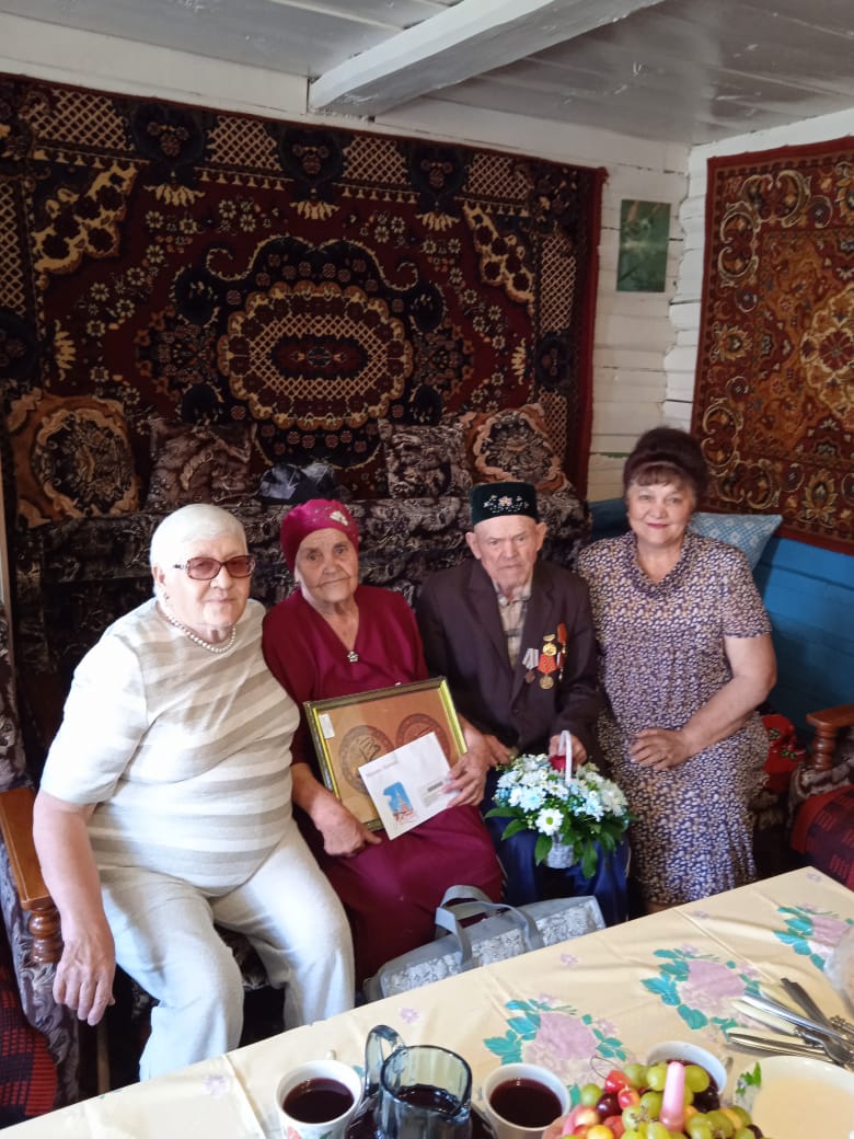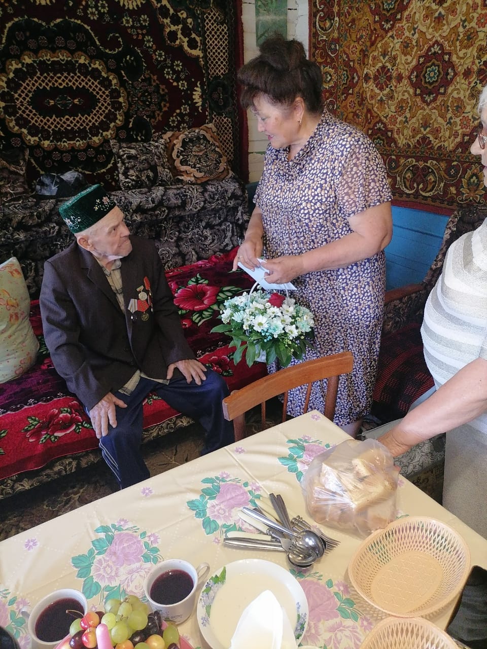 Аңа Россия Президенты Владимир Путинның котлау хатын, район башлыгы Фаил Камаевның истәлекле бүләген тапшырдылар, ветеранга иң матур һәм изге теләкләрен ирештерделәр .