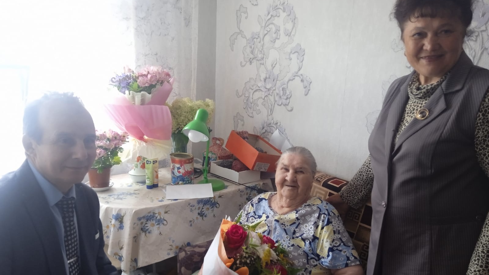 Мөхтәрәм кунаклар юбилярга чәчәкләр һәм истәлекле бүләкләр тапшырдылар.