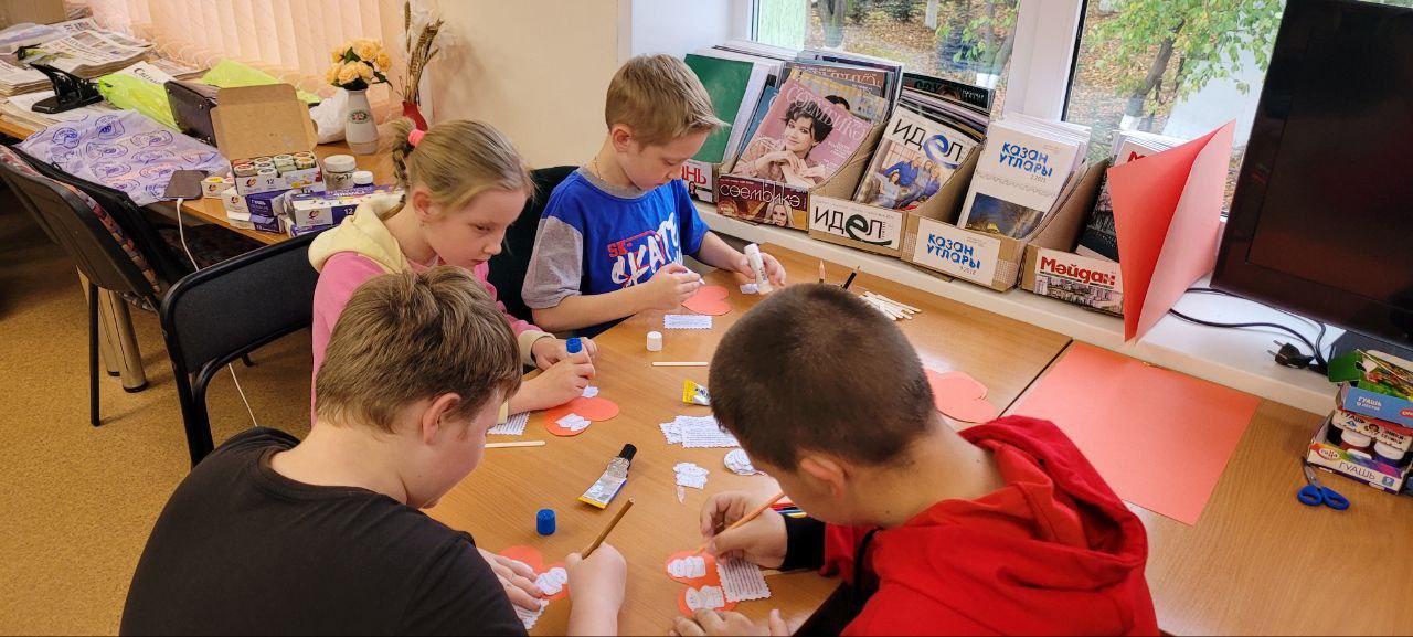 Өлкәннәр көне уңаеннан мәнфәгатьләр буенча " Укы!Буя "клубына йөрүче балалар белән Кеннәз авылы китапханәчеләре "Открытка-йөрәк"дигән мастер классы үткәрделәр