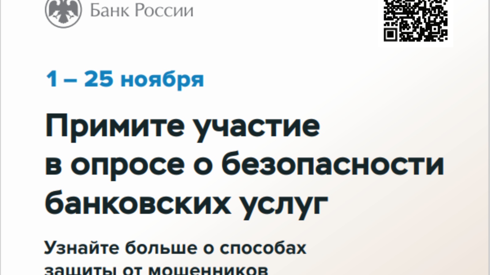 Россия Банкы халыкның кредит-финанс өлкәсе оешмалары тарафыннан күрсәтелә торган финанс хезмәтләренең куркынычсызлык дәрәҗәсе, шулай ук халыкны электрон сервислардан файдалануның куркынычсызлыгын арттыруга юнәлдерелгән чаралар белән тәэмин итү дәрәҗәсеннән канәгать булу дәрәҗәсен билгеләү максатларында икенче тиешле сораштыру үткәрүгә керешә.
