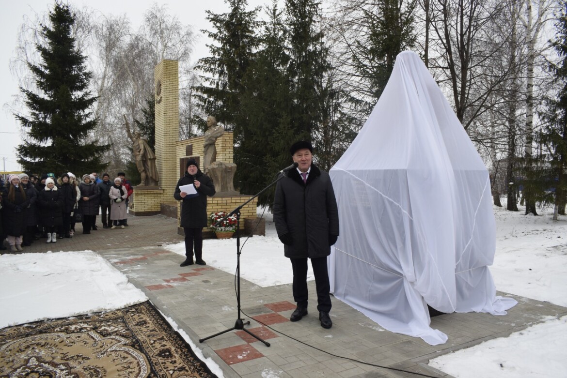 Бюстның авторы – скульптор Хәмит Мингалиев. Ул авыл җирлегенең мәдәният йорты каршында урнаштырылган. Биредә, шулай ук, Бөек Ватан сугышы ветераннары һәм тыл хезмәтчәннәренә дә һәйкәл куелуын искәртик.