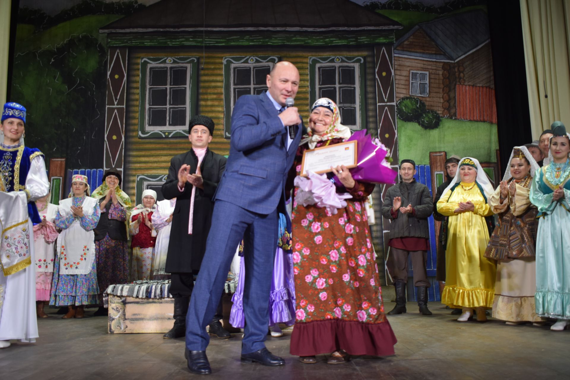 Ә безнең район башлыгы Фаил Камаев үзенең театр тамашасы белән киләчәктә Мөслим районы тамашачыларын сөендерәчәгенә ышандырды.