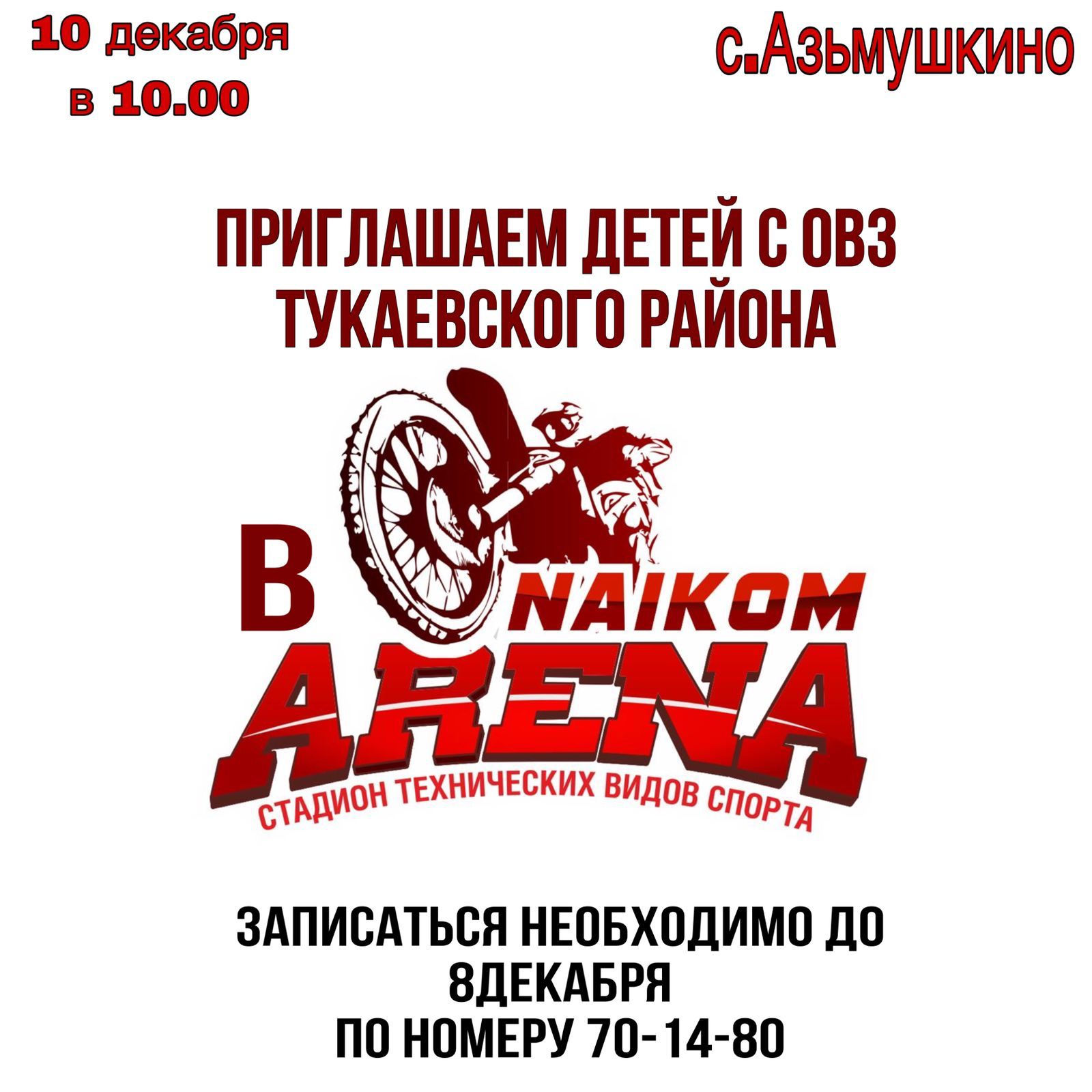 10 декабрьдә Тукай районының сәламәтлекләре буенча мөмкинлекләре чикләнгән балаларны Әҗмәкәй авыл җирлегенедә урнашкан Наиком Аренга чакырабыз.