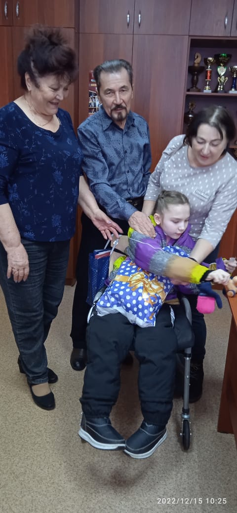 Район ветераннар(инвалидлар) оешмасы рәисе һәм авыл җирлеге игәнәчеләре Кече Шильнә авылында яшәүче Шаяхметова Ильнарага Кыш бабай кучтәнәче тапшыры