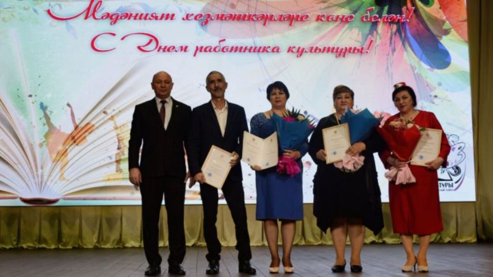 Тәбрикләү сүзләреннән соң, мәдәният өлкәсендә хезмәт куючыларны хөрмәтләделәр. Районда күп еллар эшләүче, зур ихтирамга лаек мәдәният, музей, клуб, мәдәният йортлары, китапханә, балалар сәнгате мәктәбе хезмәткәрләренә, районны республика күләмендә таныткан шәхесләргә Татарстан Республикасы, район башлыгының Мактау грамоталары, Рәхмәт хатлары, истәлекле бүләкләр, чәчәк бәйләмнәре тапшырылды.