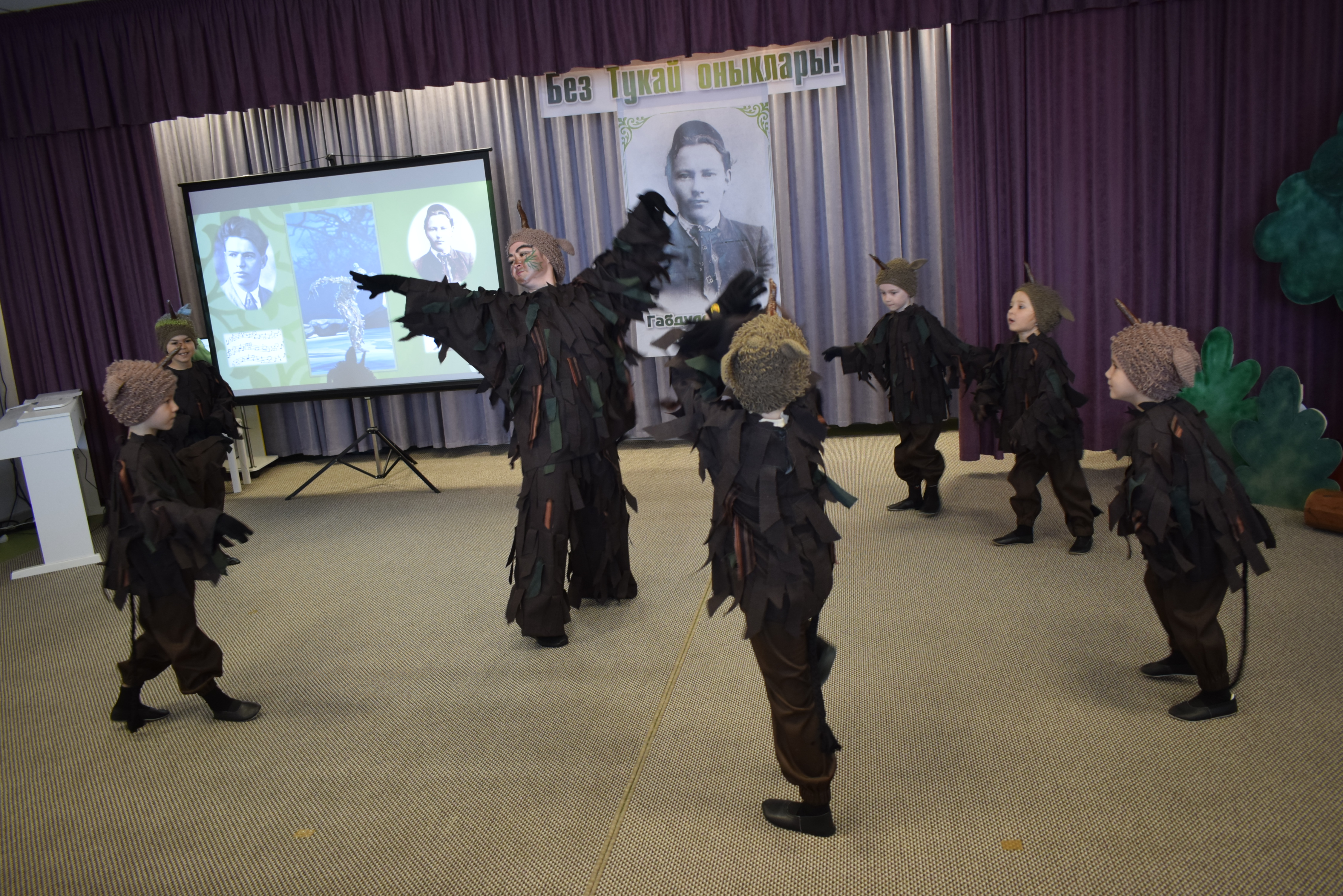 Кече яшьтәге балалар Габдулла Тукай әсәрләре геройларын сурәтләгәннәр, аларның эшләре аерым бер игътибарны җәлеп итеп тора.