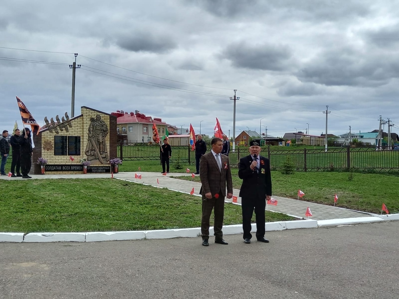 Ветераннар сугыш кырында һәлак булучыларга чәчәк салдылар. Соңыннан солдат боткасы белән сыйландылар, чәй эчтеләр. Ветераннарга авыл җирлеге башлыгы бүләкләр тапшырды. Шулай ук махсус хәрби операциядә катнашучыларга көнкүреш химия кибетенә сертификатлар тапшырылачак. Мәктәп укучылары һәм балалар бакчасында тәрбияләнүчеләр ветераннар өчен зур концерт куйдылар.