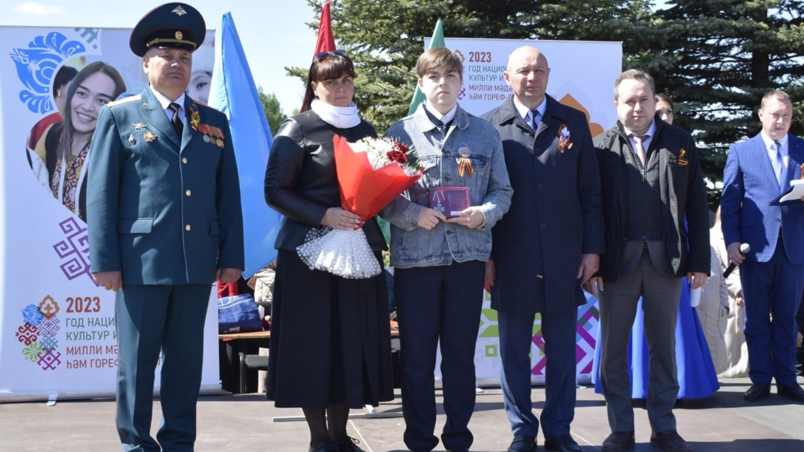 Бүләкләрне Тукай районы башлыгы Фаил Камаев, Россия Пенсия һәм социаль иминият фондының Татарстан Республикасы буенча бүлеге идарәчесе Эдуард Вафин, Яр Чаллы шәһәре Комсомол районы һәм Тукай районы хәрби комиссары Дамир Вәлиев тапшырды.