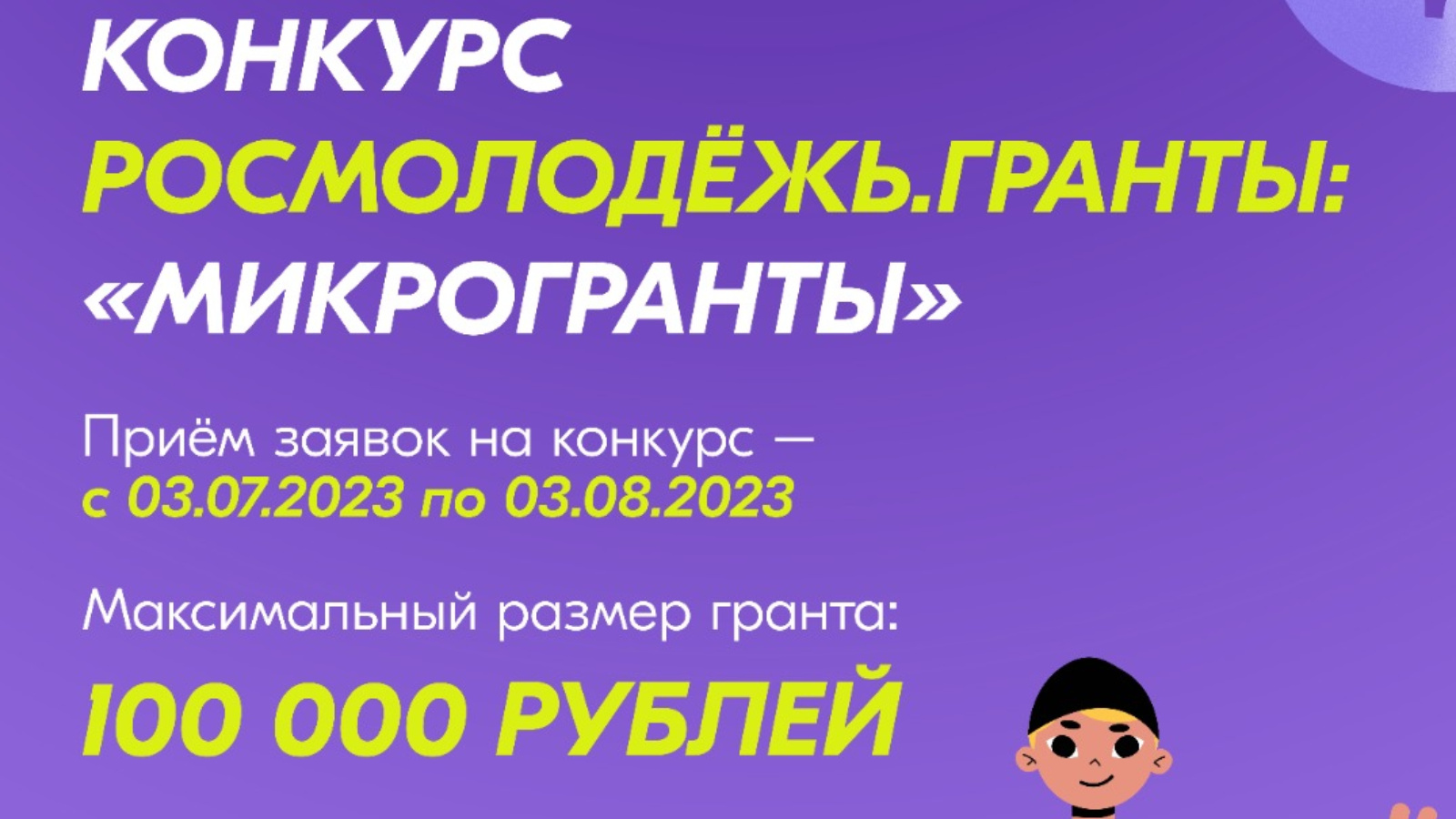 Махсус синең өчен без Росмолодежь конкурсын үткәрәбез.Грантлар:» Микрогрантлар", анда 100 мең сумга кадәр акча алырга мөмкин. Әлеге конкурсның тагын бер күңелле бонусы – микрогрантларда отчет документларының гадиләштерелгән системасы! Чарага сылтама: https://grants.myrosmol.ru/events/af49c6ed-0efa-404b-8c9e-fa960446e462 конкурс үткәрү даталары: