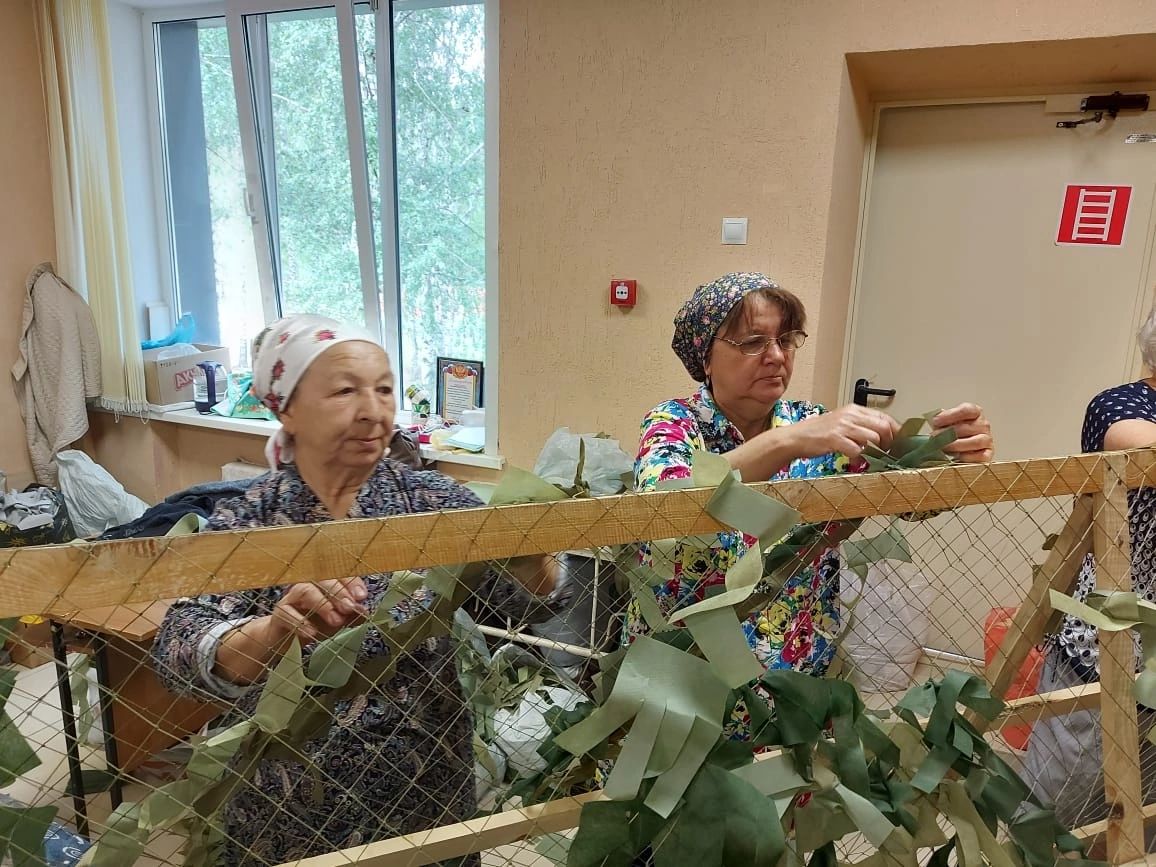 "Безнең райондашлар бергәләшеп маскировка челтәре үрәләр. Очрашып, бер-берсенә ярдәмгә килеп, аралашып, дөнья хәлләре белән уртаклашалар", - ди Фәйрүзә Вәҗиева район Ветераннар Cоветы рәисе.