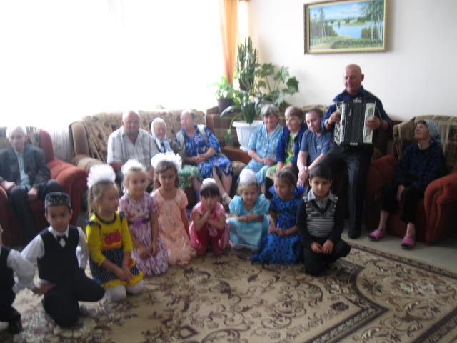 һәм картлар йорты”да Тлянче Тамак авылы“Акчәчәк”балалар бакчасында тәрбияләнүчеләр кунакта булдылар. Анда яшәүчеләргә балалар чын күңелдән җырлар җырладылар,матур итеп шигырьләр сөйләделәр.