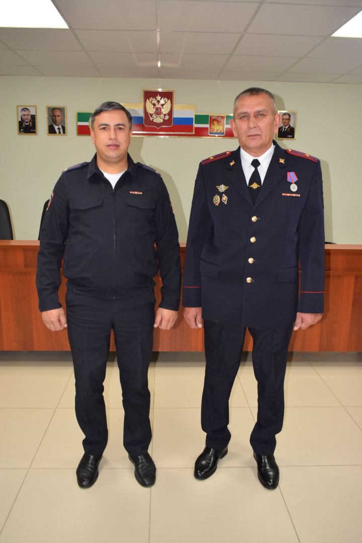 – Чынлап та шулай. Илдар Салихҗан улы Вәгыйзов – Новотроицкое һәм Комсомол авыл җирлекләрендә өлкән участковый булып хезмәт куя. Полиция майоры Илдар Вәгыйзов Херсон өлкәсендә җәмәгать тәртибен саклау максатыннан дүрт ай ярым командировкада булды, шул чорда Херсон өлкәсендә шартлау булды. Хезмәттәшебез фаҗига булган җирдә батырлык күрсәтте – илле кешене коткарды. Россия Президенты Владимир Путин Илдар Салихҗановичның батырлыгын югары бәяләде. Полиция хезмәткәрләре һөнәри бәйрәмендә – 10 ноябрьдә Татарстан Рәисе Рөстәм Миннеханов В.Путин тарафыннан бирелгән «За отличие по охране общественного порядка» медален тапшырды. Бу – безнең өчен зур горурлык. Гомумән, безнең составта бары тик үз эшен яраткан, һөнәренә тугры булган ир-егетләр һәм хатынкызлар эшли.