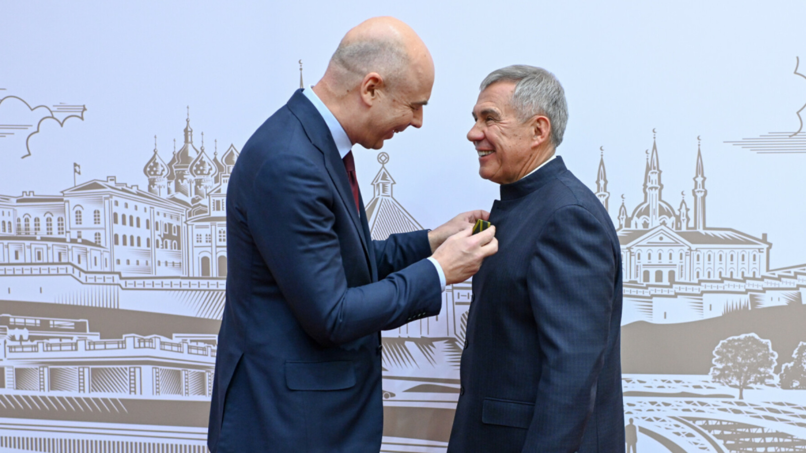 «Рөстәм Нургалиевич финанс министры булып та эшләде, бүген республика башлыгы вазифасын башкара. Финанслар – ышанычлы кулларда. Шуңа күрә без бик рәхәтләнеп, Рөстәм Нургалиевич, Сезгә әлеге бүләкне тапшырабыз», - диде Антон Силуанов.