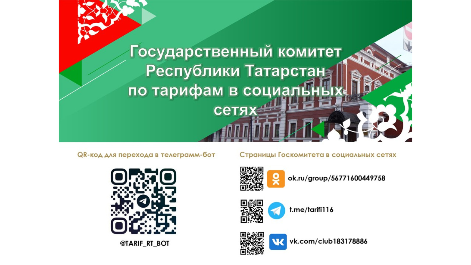 Республикада яшәүчеләрне гамәлдәге тарифлар турында тынычландыру максатында Татарстан Республикасы Тарифлар буенча дәүләт комитеты 2023 елда «Татарстан тарифлары»телеграмма-ботын проектлаган. Электрон ярдәмче регулятор органына шәхси мөрәҗәгать итмичә тарифлар турында актуаль һәм ышанычлы мәгълүматка реаль вакыт режимында керү мөмкинлеген бирә, кызыксындырган мәгълүматны тиз табарга, шулай ук регулятор белән республика халкы арасында үзара хезмәттәшлек дәрәҗәсен күтәрергә мөмкинлек бирә. Чат-боттагы мәгълүмат гамәлдәге бәяләр (тарифлар)расланган яки төзәтелгән саен даими рәвештә яңартыла.