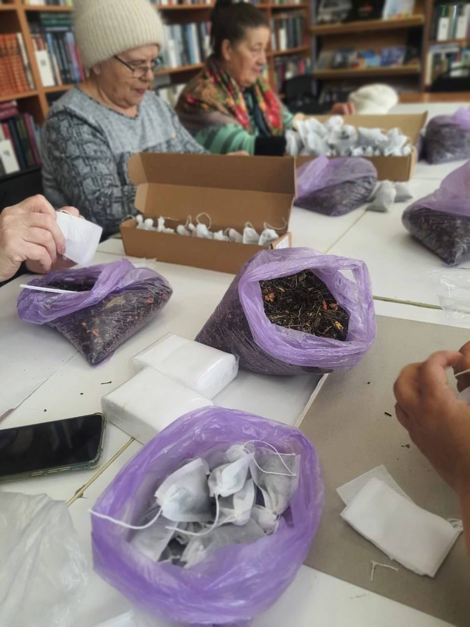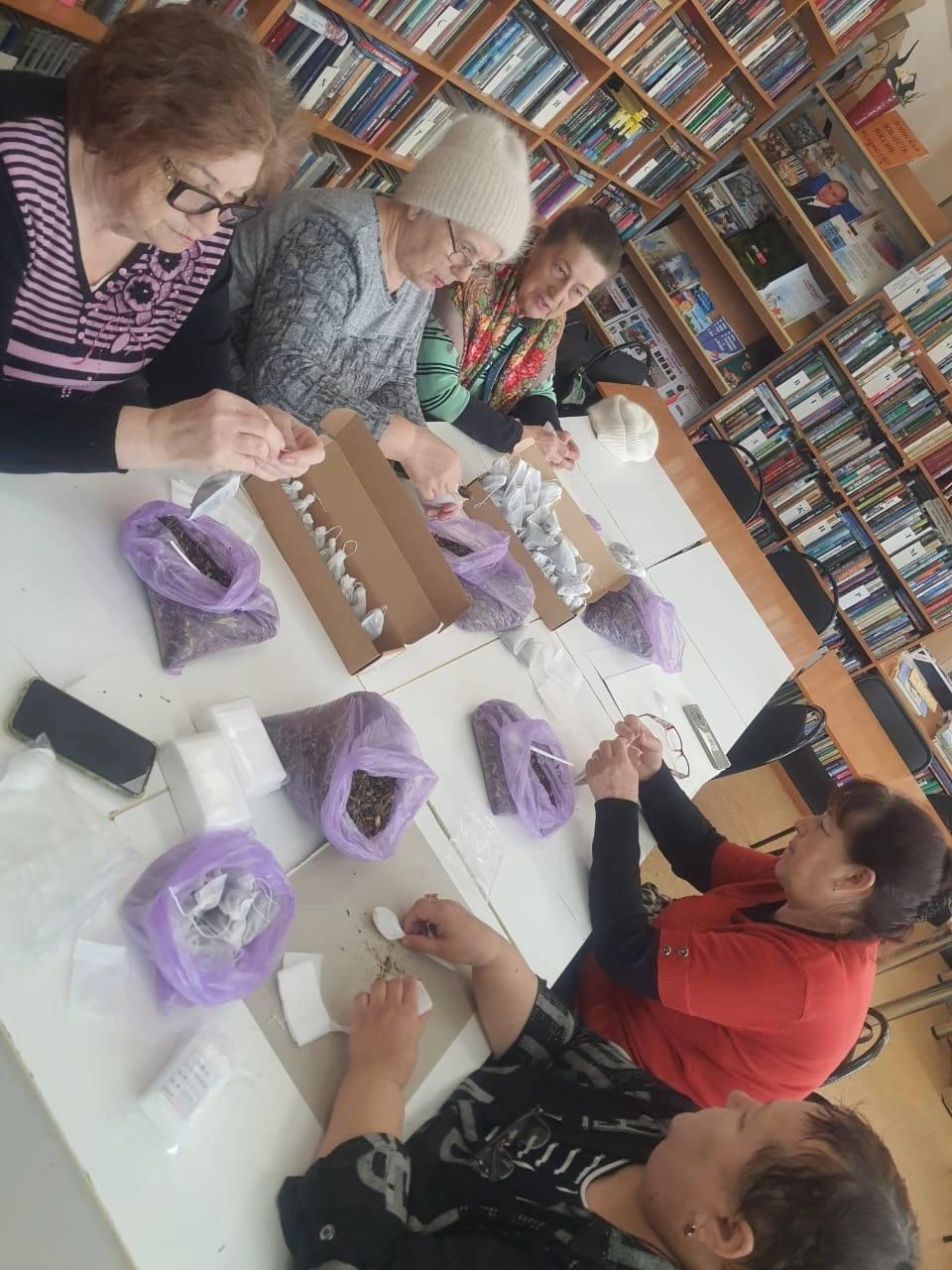 Бүген «Татарстан» поселогы китапханәсендә «Сәламәт гомер» клубы фронттагы сугышчылар өчен 500 пакет үлән чәйен пакетлауда волонтёрларга ярдәм итте.
