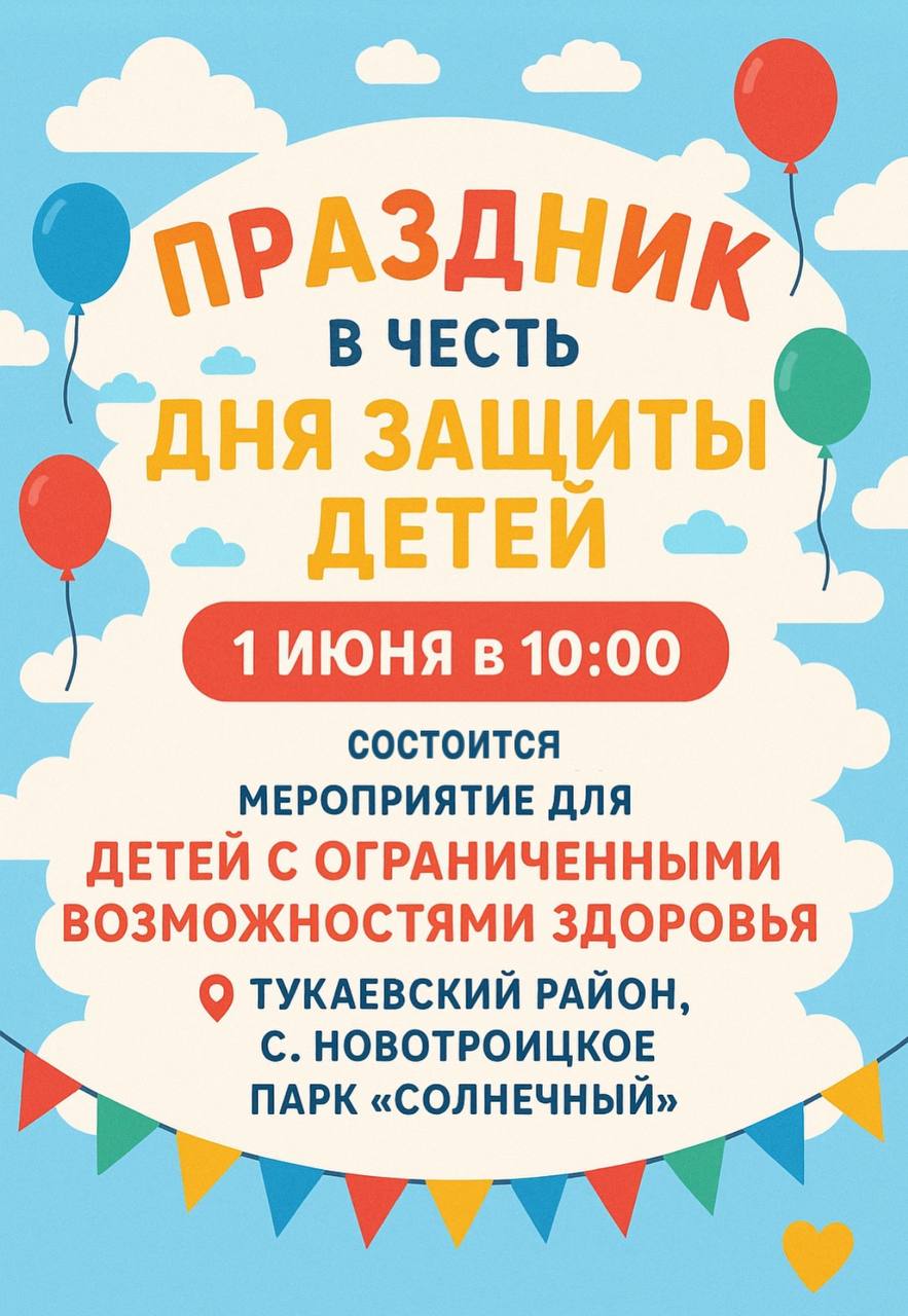 1 июньдә 10:00 сәгатьтә Тукай районында ОВЗАЛЫ балалар өчен бәйрәм чарасы булачак.