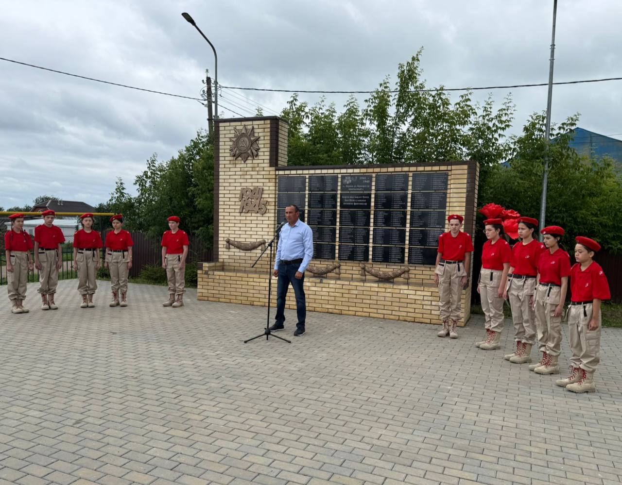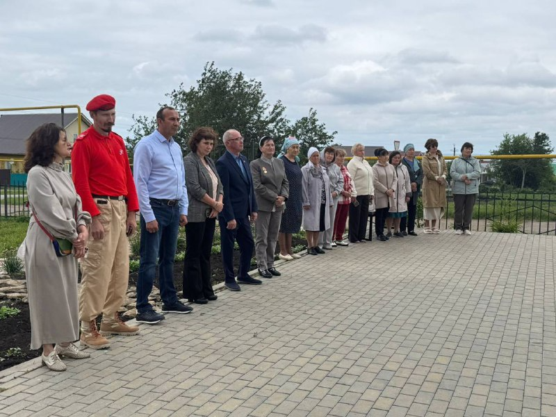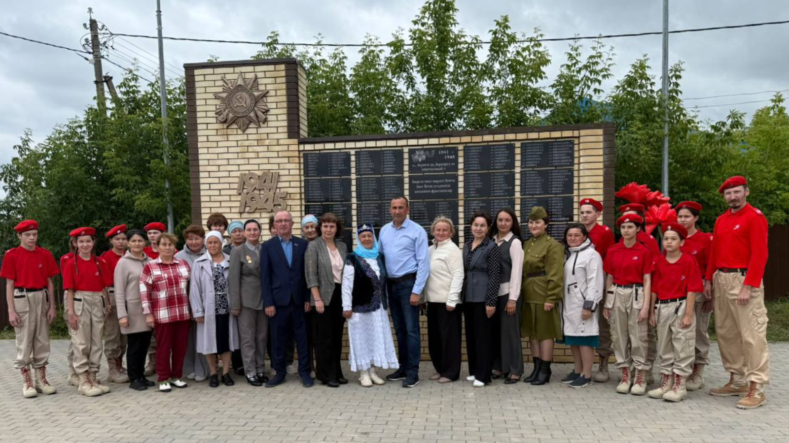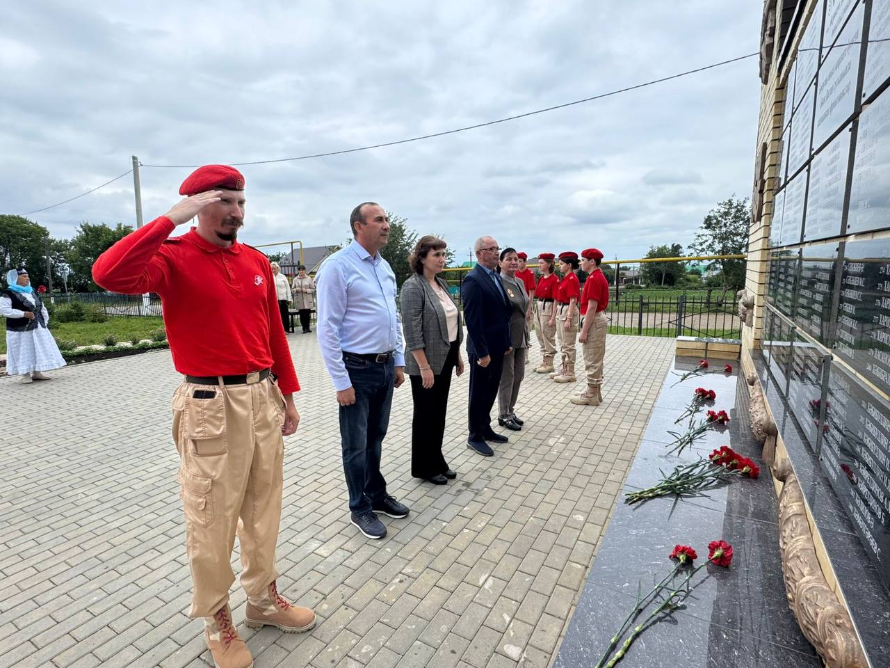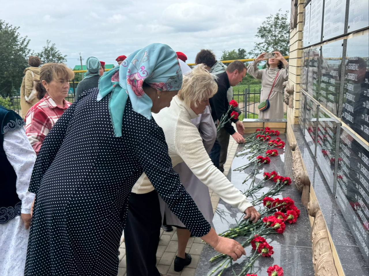 Авыл халкы белән бергә ул һәлак булган сугышчылар һәйкеленә чәчәкләр салды.