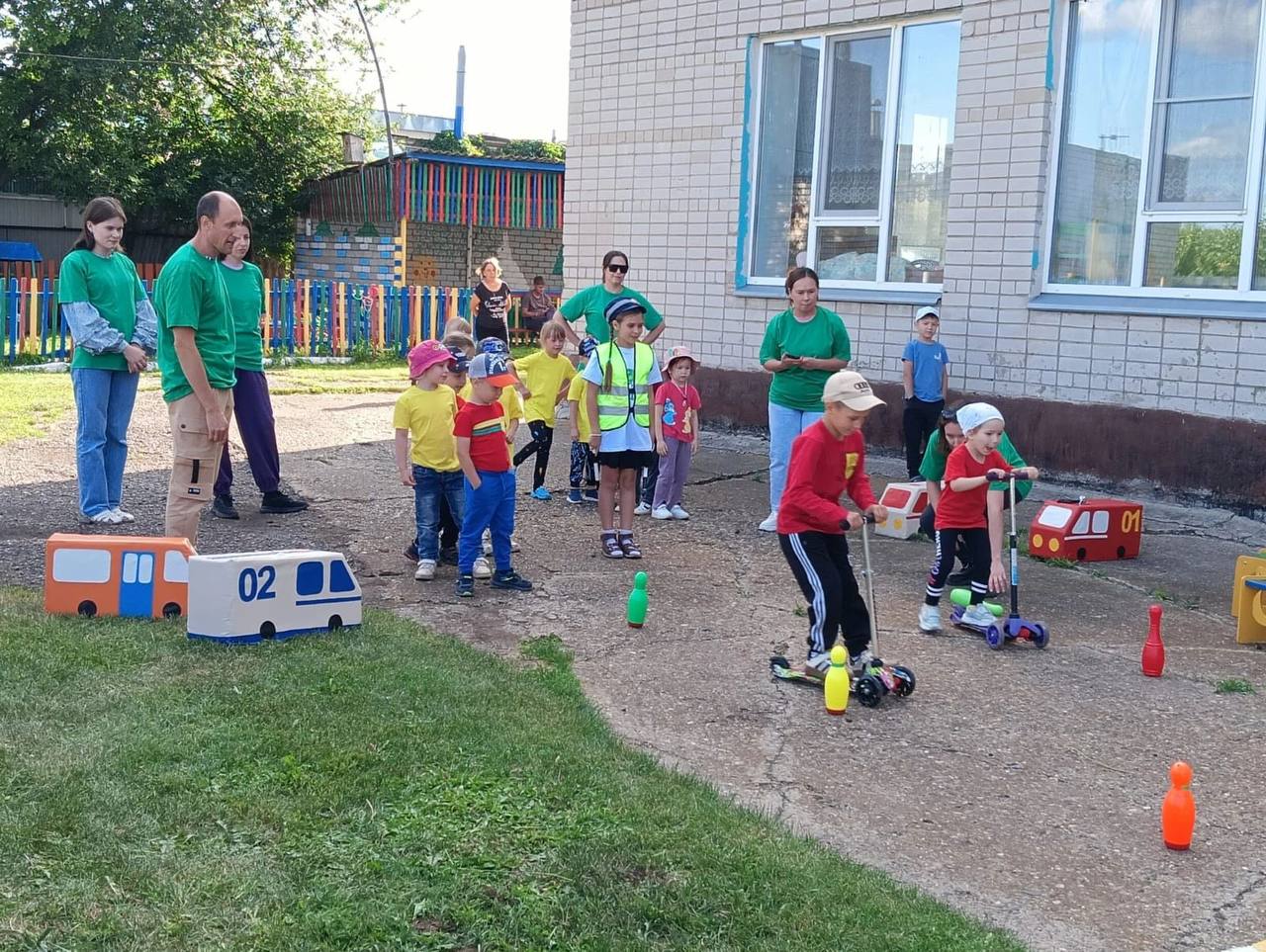 Чара барышында балалар һәм ата-аналар «Передай жезл другу», «Выложи пешеходный переход», «Дорога с препятствиями», «Умелый водитель», «Автокресло» кебек төрле эстафеталарда актив катнашты.