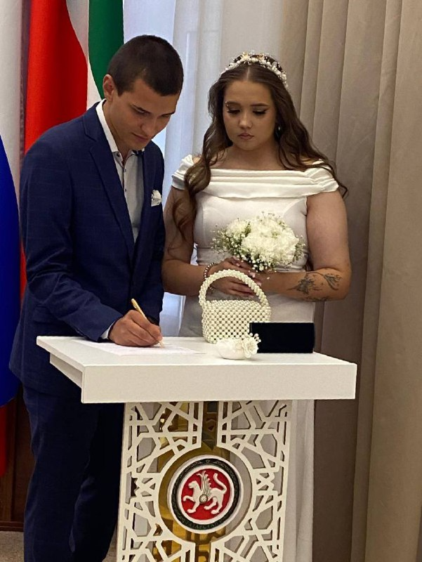 Татарстан Республикасы көне уңаеннан Казанда махсус тантана узды: бер үк вакытта республиканың барлык район һәм шәһәр округларыннан 45 пар никахларын теркәде.