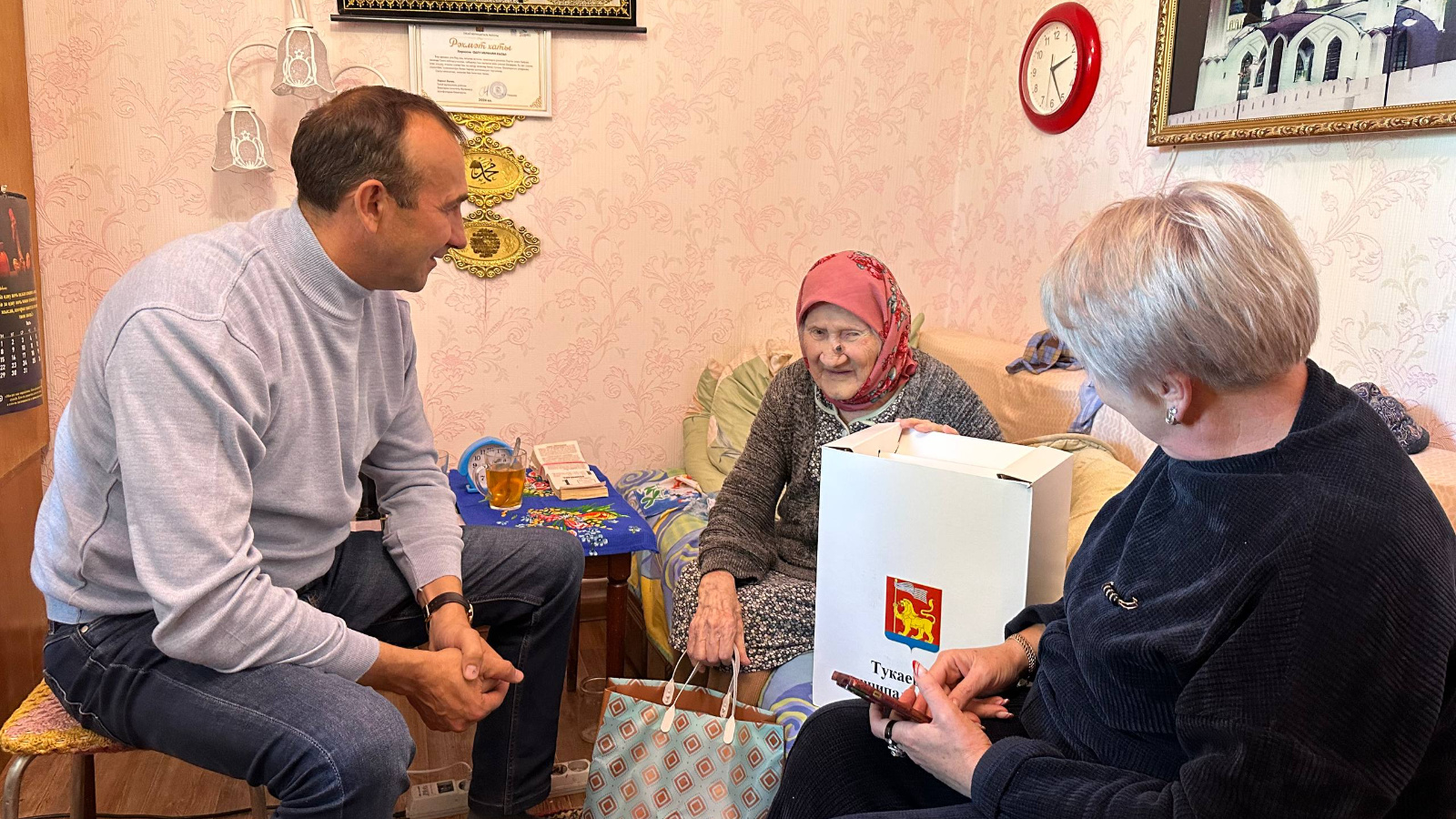 Өлкәннәр декадасы кысаларында Тукай районы башлыгы Камил Нәҗмиев районыбызның хөрмәтле озын гомерле кешеләре белән очрашып, аларны юбилейлары белән котлады.