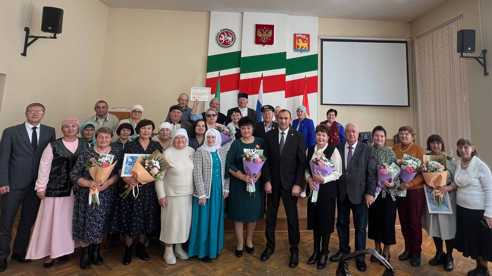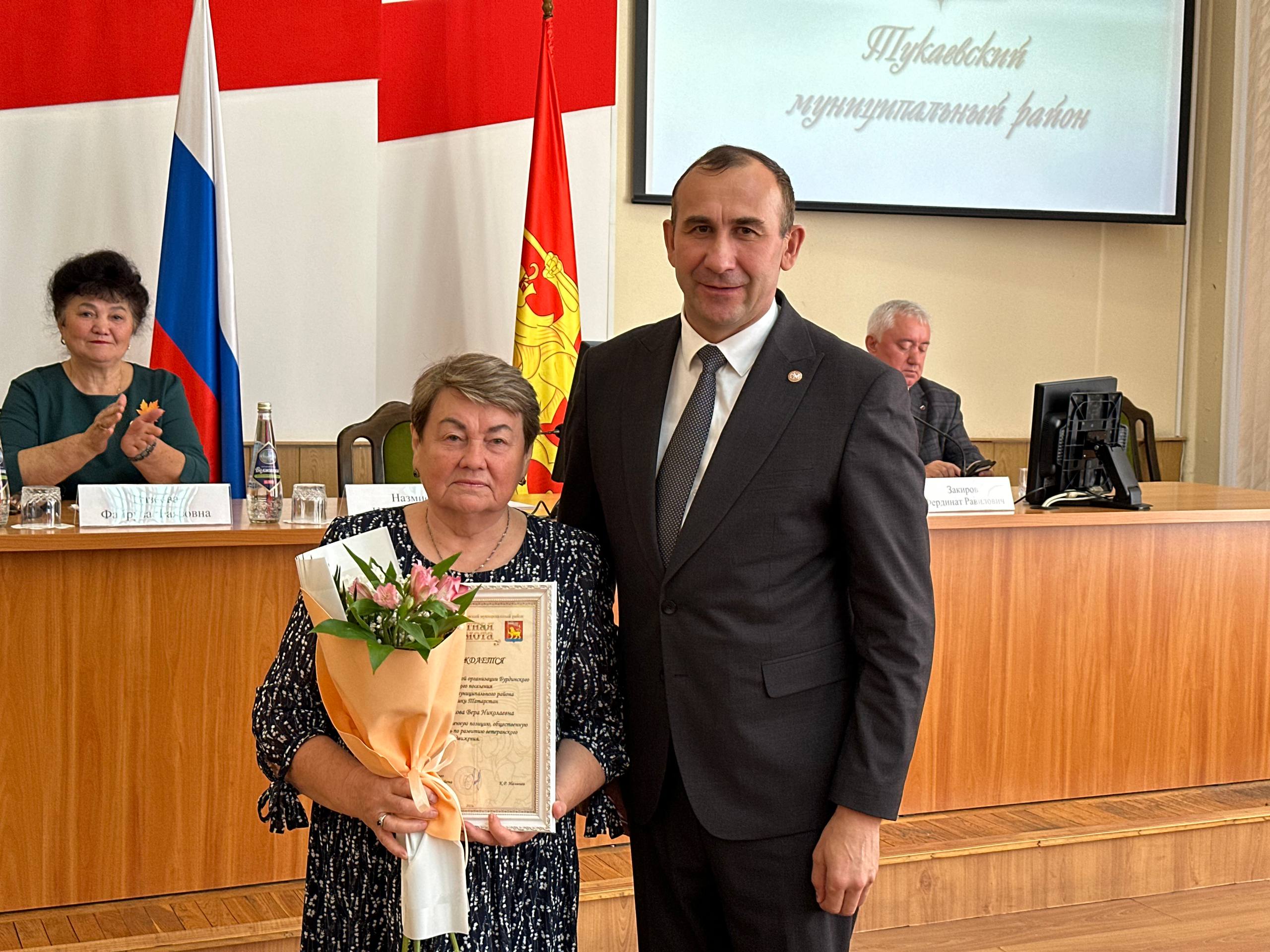 Очрашу барышында ветераннарны Өлкәннәр көне белән котладылар һәм район үсешенә зур өлеш керткән активистларга бүләкләр тапшырдылар.