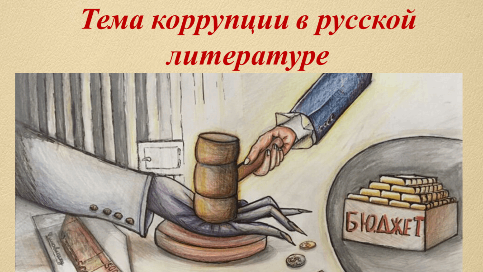 Лев Николаевич Толстой үзенең «Сугыш һәм тынычлык» монументаль Роман-эпопеясендә хәтта армия командованиесе арасында да коррупциянең таралуын ассызыклый. Солдат югалтуларын исәпкә алу системасы шулкадәр бозылган ки, офицерлар тыныч кына һәлак булган сугышчылар өчен түләүләрне үзләштерәләр. Александр Сергеевич Пушкин "Дубровский" повестенда алпавыт троекуровны тасвирлый, ул үз максатларына ирешү өчен, ришвәт һәм канун белән махинацияләрне дә кертеп, теләсә нинди гамәлләргә барырга әзер. Рус язучыларының әсәрләре илһам чыганагы һәм актив гражданлык позициясе үрнәге булып хезмәт итүләрен дәвам итәләр. Алар җәмгыятьне коррупция нәтиҗәләре өстендә уйланырга һәм аны җиңү юлларын эзләргә чакыра. Безгә атаклы авторларыбызның китапларындагы зирәклекне үзләштерергә һәм көндәлек практикада коррупциянең теләсә нинди формаларына кискен каршы торырга кирәк. Рус әдәбияты тәкъдим иткән идеяләрнең байлыгын аңлы рәвештә кабул итәргә һәм гаделсезлектән һәм башбаштаклыктан азат җәмгыять төзүгә актив ярдәм итәргә кирәк. Безнең дәүләтнең язмышы һәр гражданның кертеме белән билгеләнә бит. Тарихи яктан коррупция һәм ришвәтчелек дәүләт хезмәте белән бәйле иде.