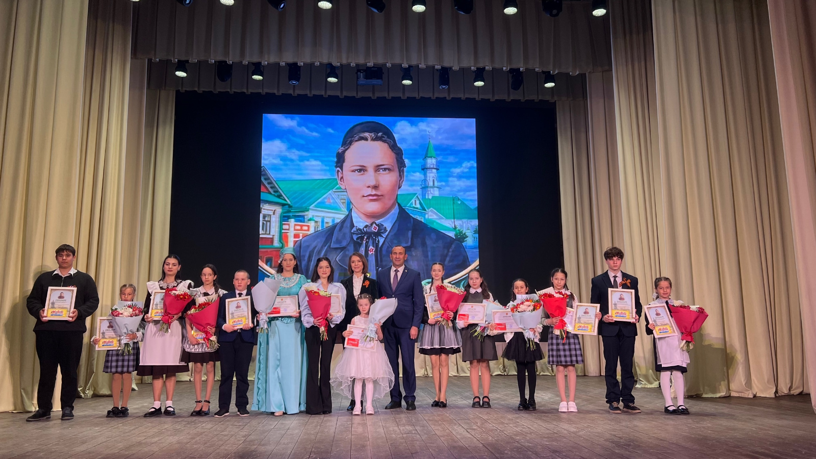 Соңыннан сәхнә түренә районыбыз йолдызчыклары, республикакүләм шигырь укучылар бәйгеләре җиңүчеләре чакырылды. Аларны район башлыгы Камил Нәҗмиев бүләкләде.